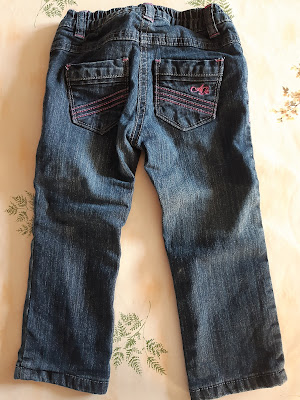 Pantalon D'jean, intérieur chaud, 18 mois (5€) {B7}